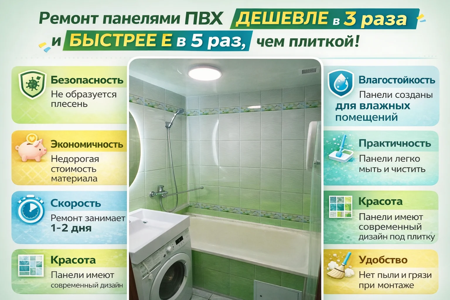 - Скорость. Ремонт панелями занимает всего 1-2 дня.